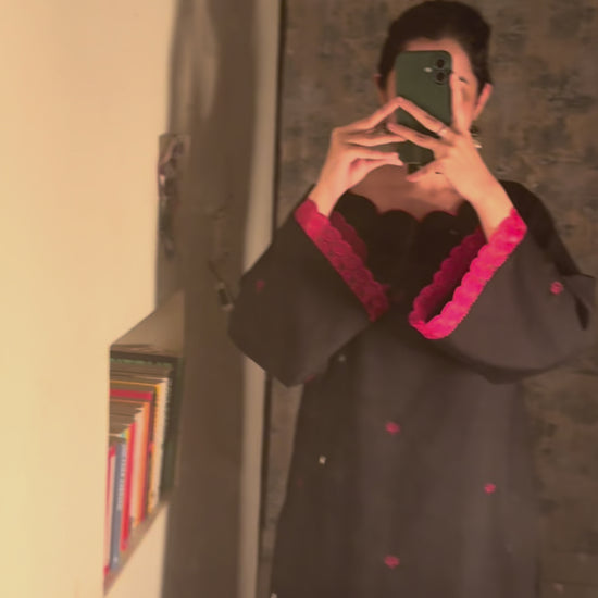 Designed for you who love timeless elegance, Firdaus features a rich black winter kurta with intricate red embroidery, paired with a flowing Pakistani salwar. Crafted in soft spun fabric, it blends comfort and heritage—perfect for festive evenings, family gatherings, and refined winter outings.