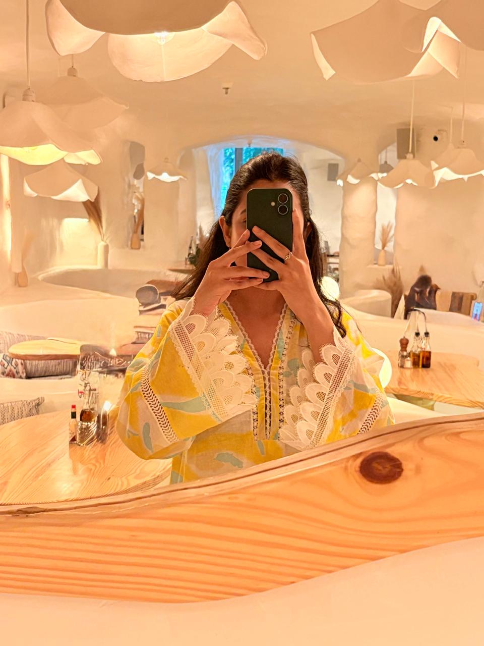 DESCRIPTION: Fresh, feminine, and full of light — Noor-e-Bahar captures the essence of everyday beauty. Featuring a lemon yellow and white kurta with delicate embroidered detailing and statement sleeves, this set brings a touch of elegance to your daily wear.