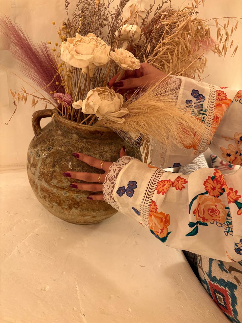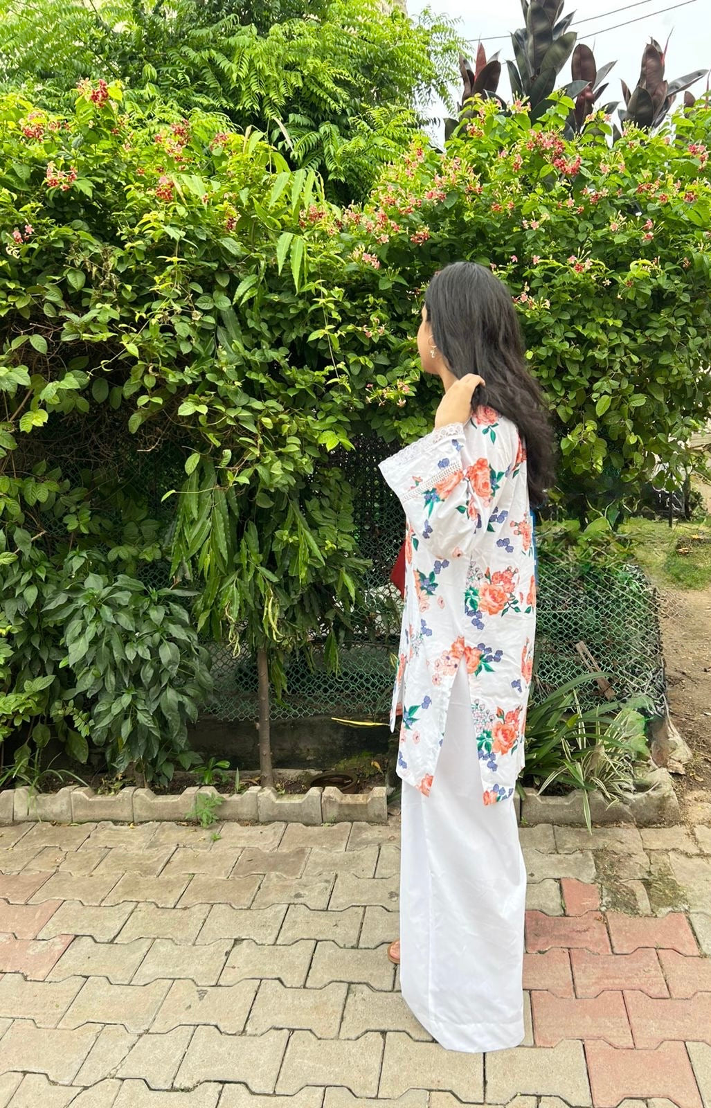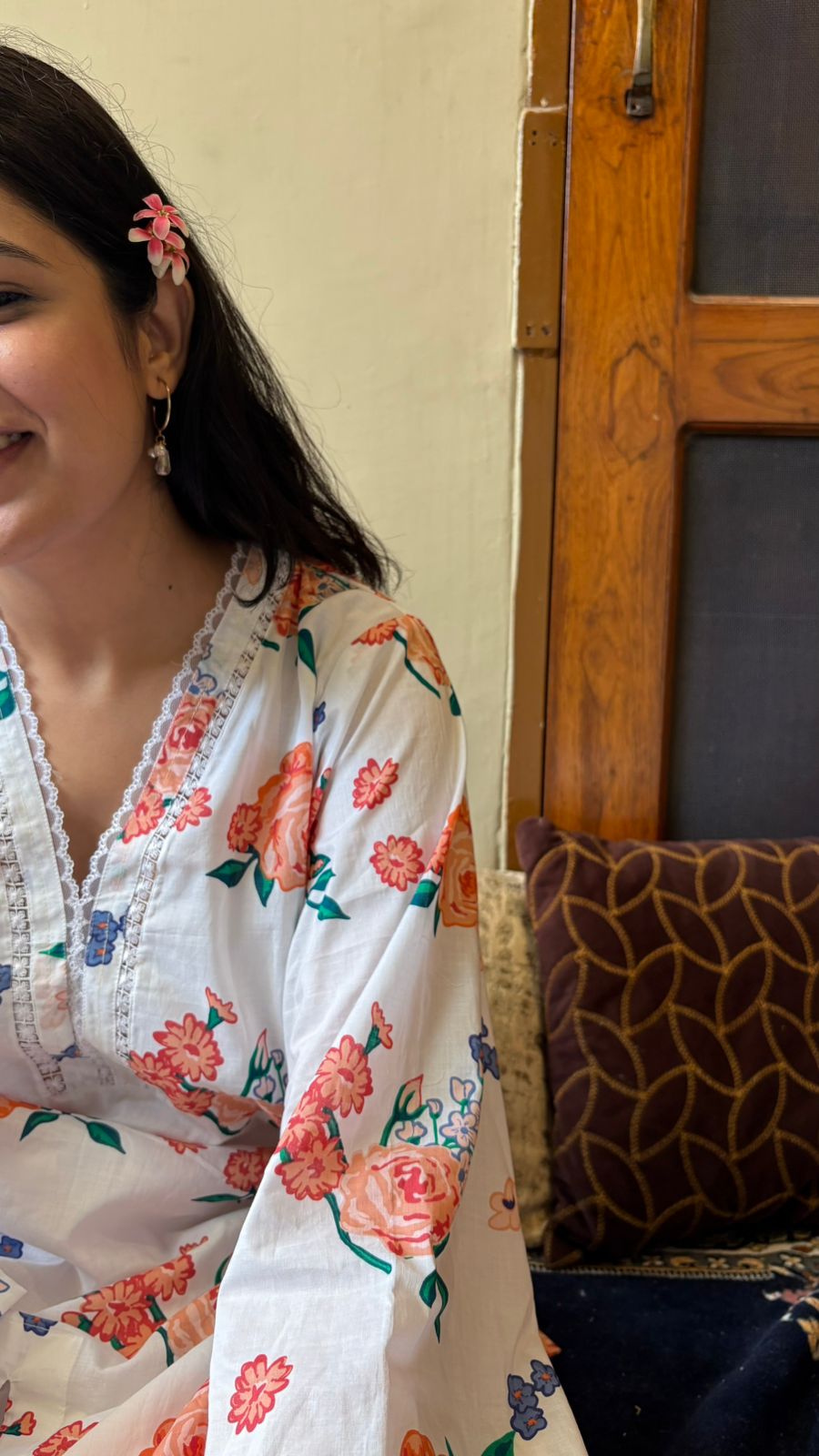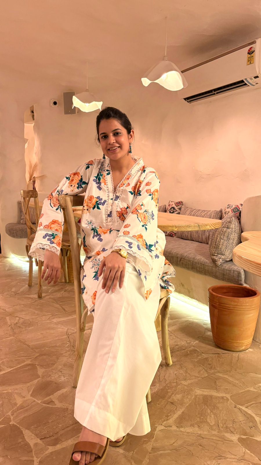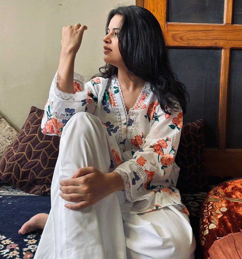 Soft as a summer breeze — Naqsh-e-Narma is a delicate expression of grace and calm. This white kurta set features subtle floral prints that feel like poetry on fabric, paired with a matching soft cotton salwar for a look that’s as serene as it is stylish.