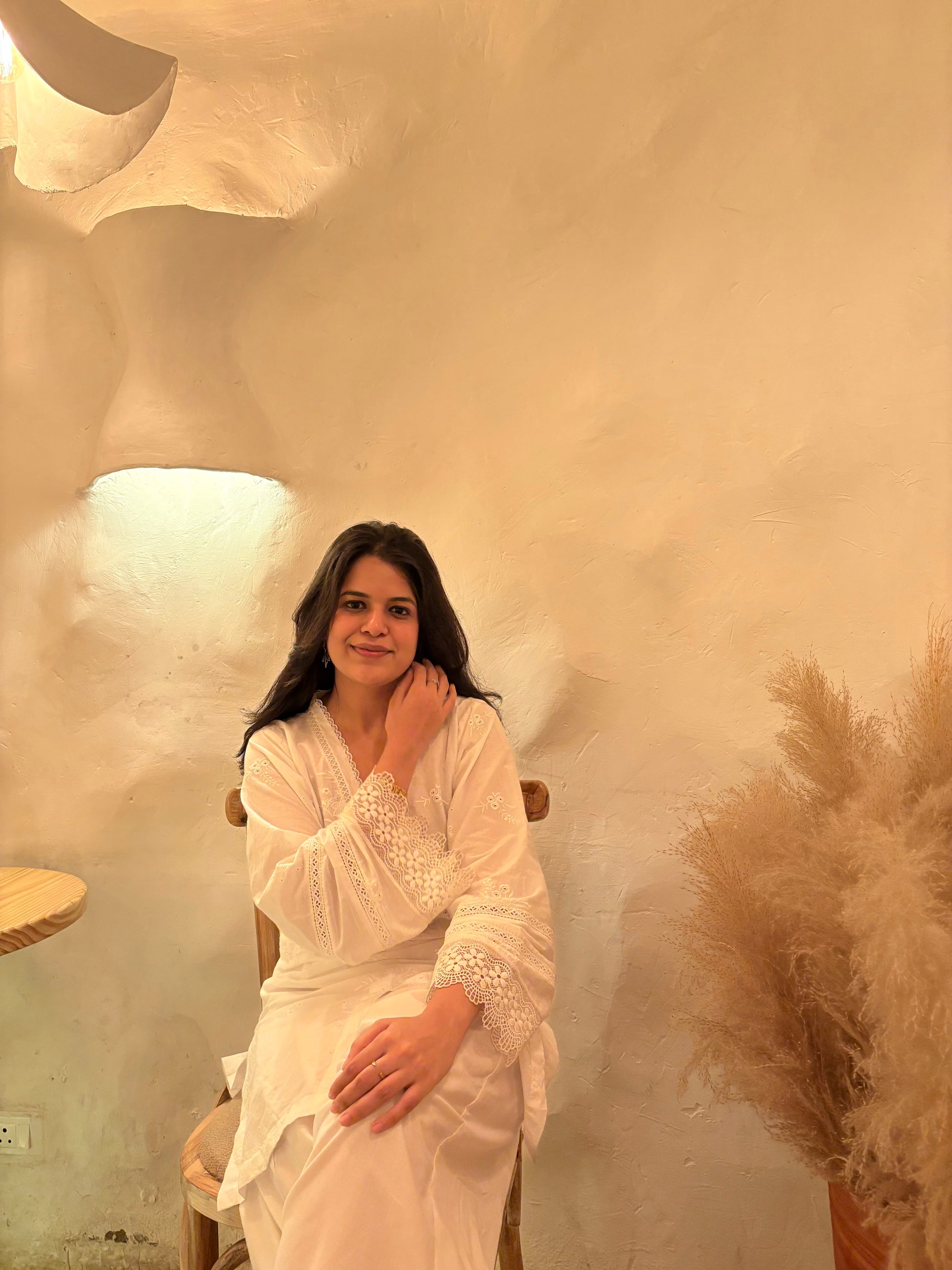 A kurta that whispers elegance — Sheer-e-Zar is crafted in pure, soft cotton to keep you comfortable through every season. Featuring delicate chikankari embroidery, lace-detailed sleeves, and a relaxed yet refined silhouette, this piece blends tradition with everyday grace.